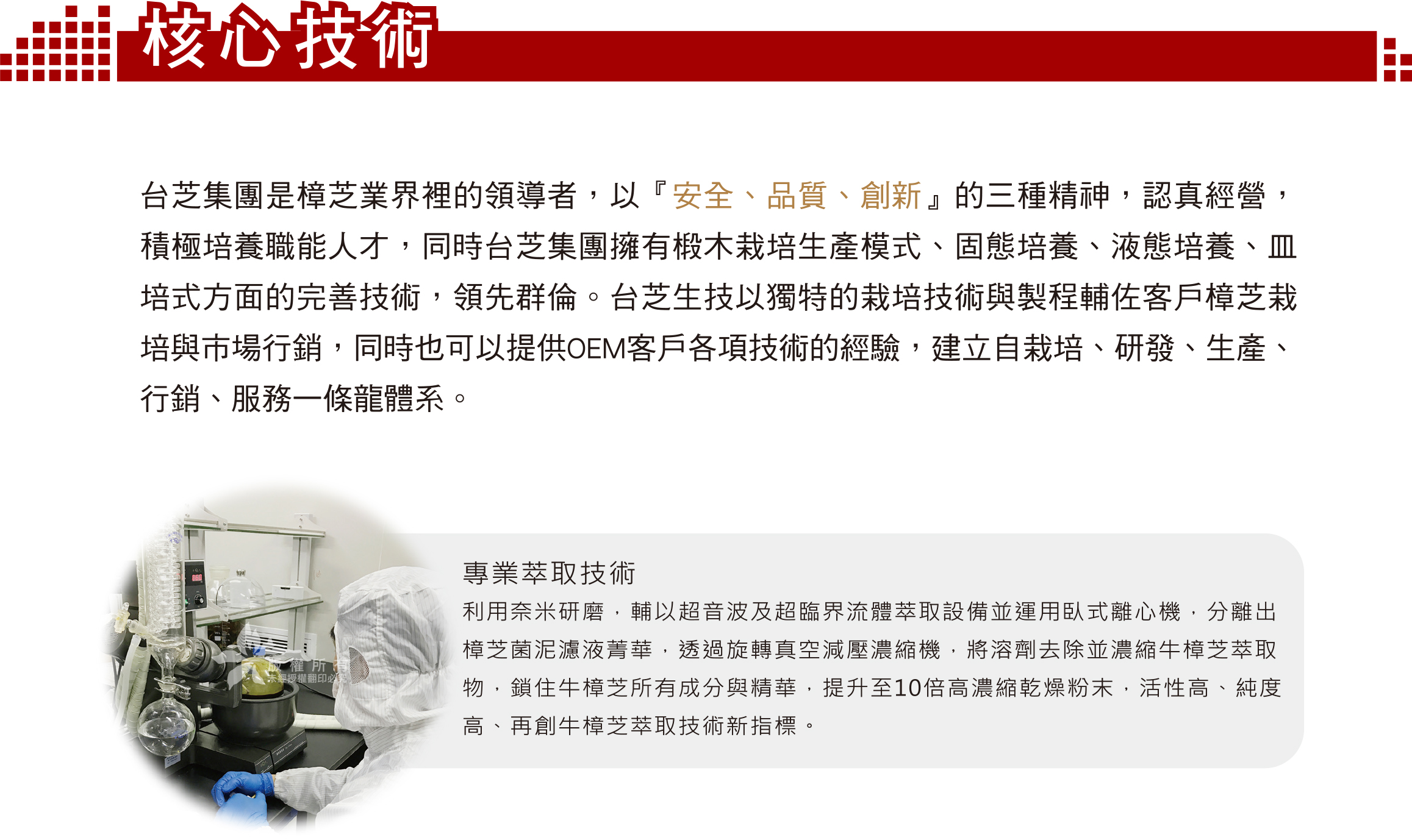 台芝集團以牛樟芝為研發平台,已有長久的優勢基礎,近年來,除了國